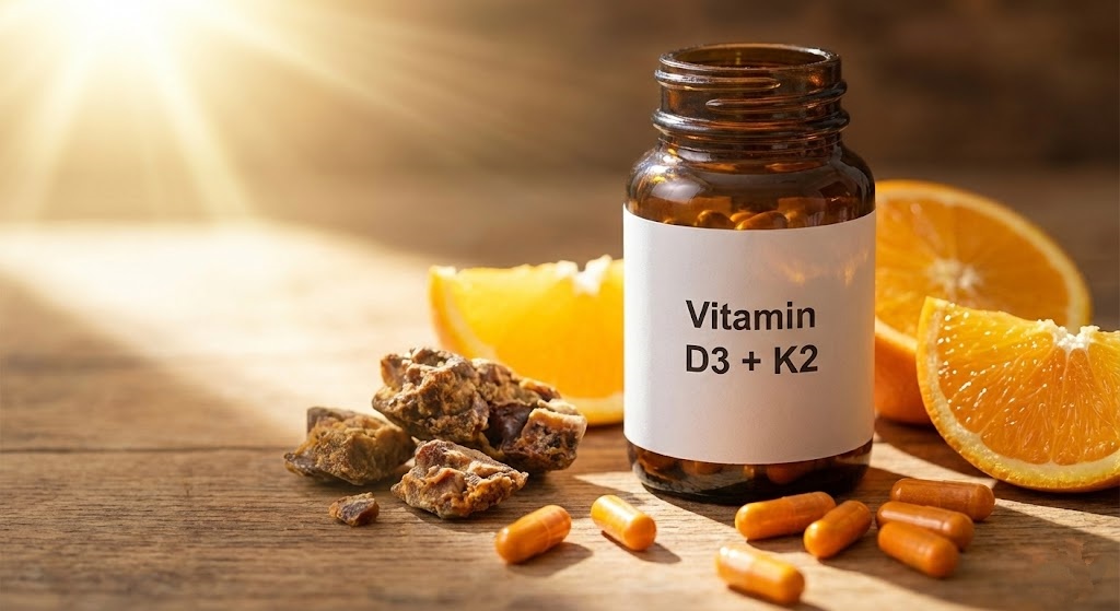 يُعرف فيتامين D3 بـ “فيتامين الشمس”، ونقصه في شتاء المغرب أمر شائع جداً. لكن السر الحقيقي يكمن في دمجه مع فيتامين K2.