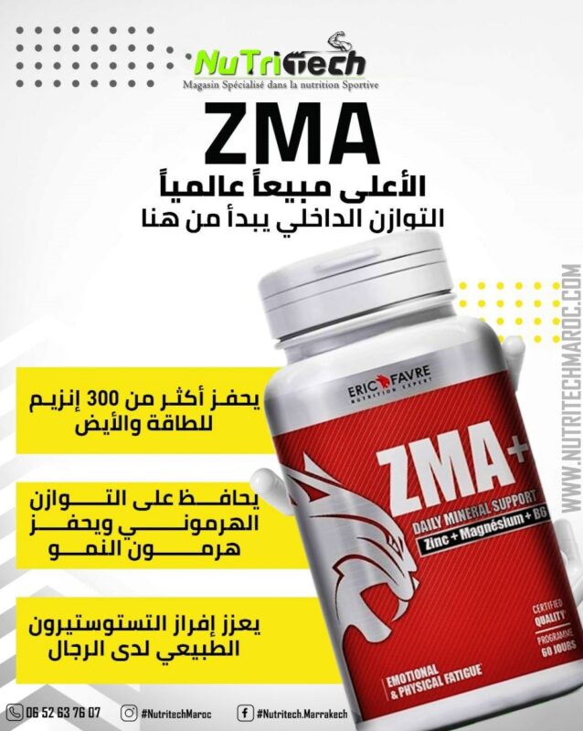 يُعتبر ZMA من أكثر المكملات الغذائية شهرة في المغرب بين الرياضيين والأشخاص النشيطين. تركيبته الفعّالة من الزنك، المغنيسيوم، وفيتامين B6 تساعد على تحسين النوم، تعزيز الاستشفاء العضلي، وزيادة الطاقة، مما يجعله خيارًا مثاليًا لتحقيق أفضل النتائج.