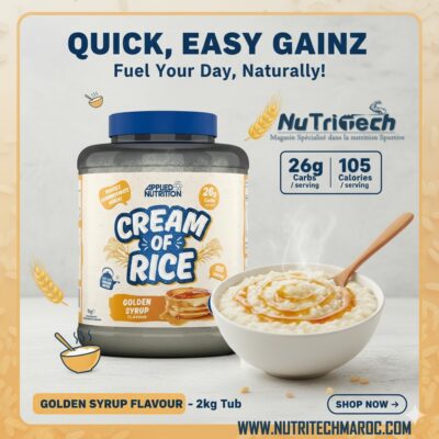 ابدأ يومك بطاقة ونشاط مع كريم الأرز من Applied Nutrition. منتج غني بالكربوهيدرات المعقدة، سهل الهضم، يساعدك على الشعور بالشبع وتزويدك بالوقود لأداء تمارينك أو نشاطك اليومي.