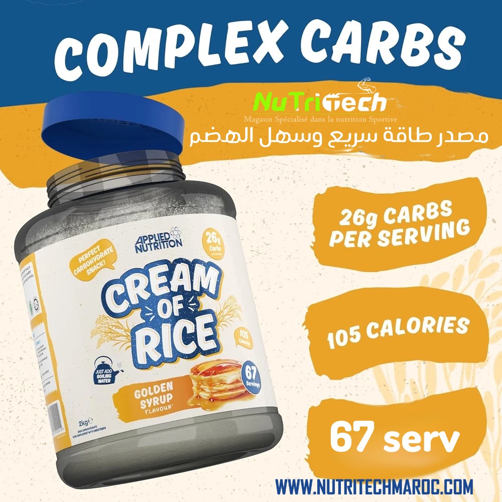 ابدأ يومك بطاقة ونشاط مع كريم الأرز من Applied Nutrition. منتج غني بالكربوهيدرات المعقدة، سهل الهضم، يساعدك على الشعور بالشبع وتزويدك بالوقود لأداء تمارينك أو نشاطك اليومي.