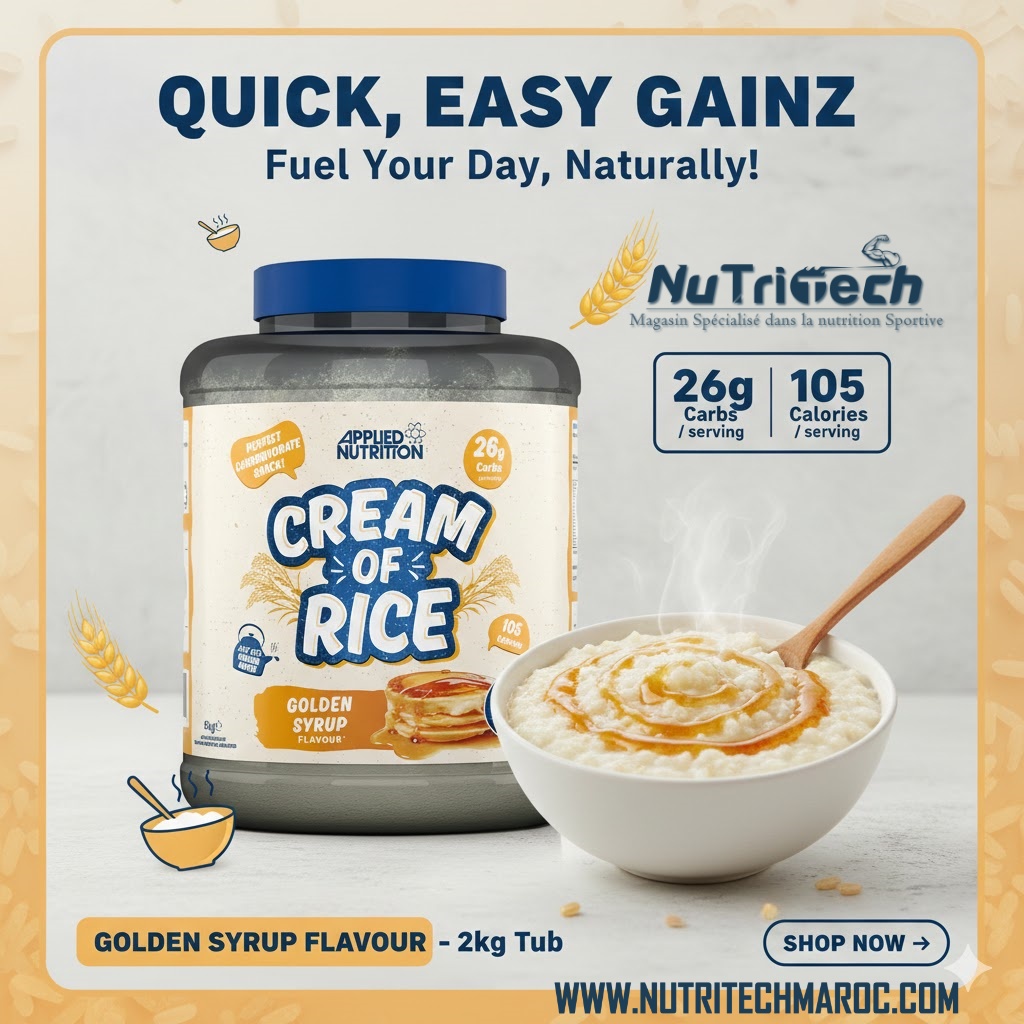 هل تبحث عن مصدر طاقة صحي وسهل الهضم ليبدأ يومك بنشاط وحيوية؟ كريم الأرز من Applied Nutrition هو الحل الأمثل. غني بالكربوهيدرات المعقدة، منخفض السكر والدهون، ويمنح جسمك الطاقة التي يحتاجها لبناء العضلات وأداء التمارين اليومية بكفاءة.
