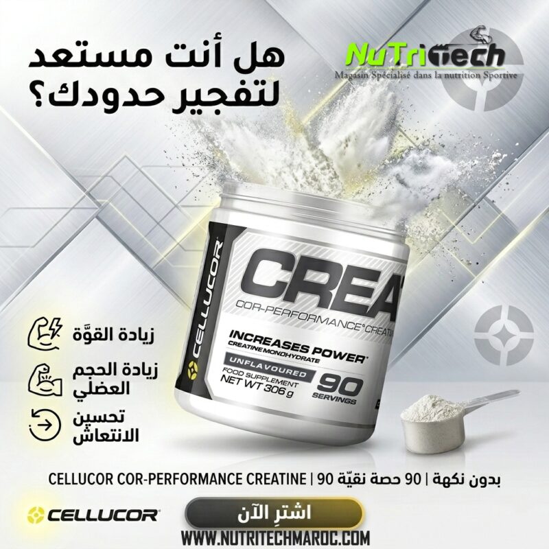 إذا كنت تبحث عن مكمل فعال لزيادة القوة وتحسين الأداء الرياضي، فإن Cellucor COR-Performance Creatine Monohydrate يعد خيارًا مثالياً للرياضيين ومحبي كمال الأجسام. يتميز هذا المنتج من علامة Cellucor بتركيبة كرياتين مونوهيدرات ميكرونايزد (Micronized) عالية الجودة، ما يساعد على الذوبان السريع والامتصاص الأفضل في الجسم.