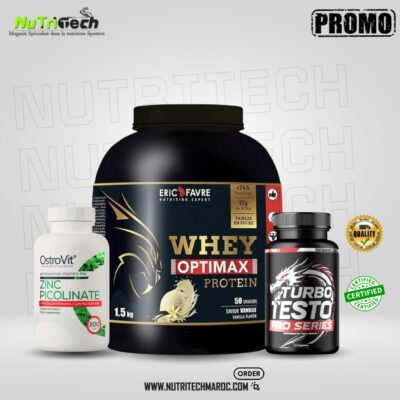 Pack لبناء العضلات وتحفيز هرمون التستوستيرون Whey Optimax Eric Favre + Turbo Testo + Zinc Picolinate