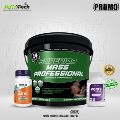 يعاني الكثير من الأشخاص النحيفين وصغار الوزن من صعوبة في اكتساب الوزن والكتلة العضلية رغم الالتزام بالتدريبات الرياضية. لهذا السبب يأتي باك القوة والزيادة في الوزن الذي يجمع بين My Mass 3.4KG، Poids Plus 90 قرص، وCreatine Monohydrate Tesla 300g، ليقدم لك حلاً متكاملاً وفعالاً يساعدك على الوصول لهدفك بأسرع وقت ممكن وبطريقة صحية.