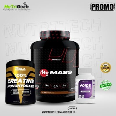PACK القوة والزيادة في الوزن – My Mass 3.4KG + Poids Plus 90 Comp + Creatine Monohydrate Tesla 300g