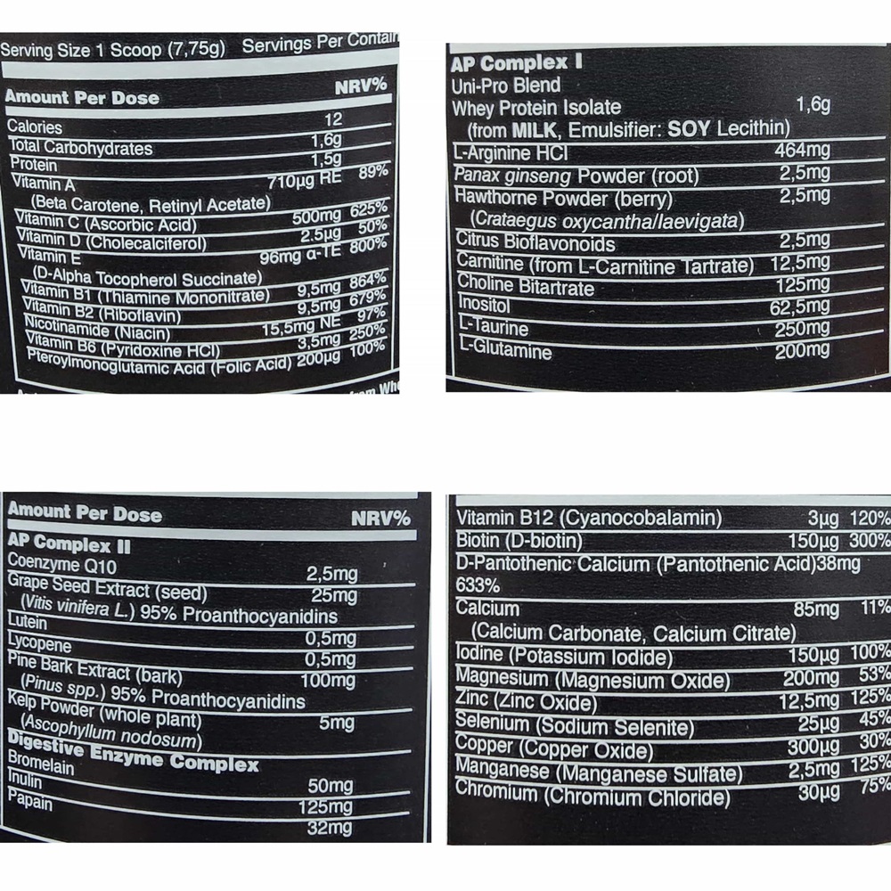 يأتي المنتج بوزن 342غ ويكفي حتى 44 حصة غذائية، حيث تعادل كل جرعة (سكوب) جرعة كاملة من أقراص Animal Pak التقليدية.